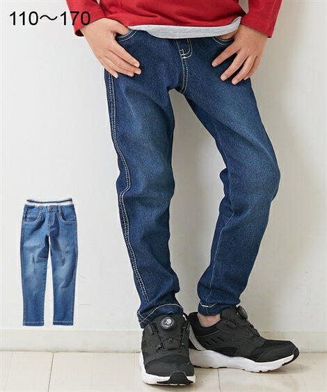 パンツ キッズ 男の子 伸びる ウエストリブ デニム ロング 子供服 ジュニア服 ネイビー グリーン系リブ /ブルー ブルー系リブ 身長140/150/160cm ニッセン nissen
