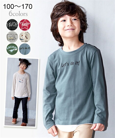 Tシャツ カットソー キッズ 男の子 プリント 長袖 女の子 子供服 ジュニア服 エンジ〜杢グレー 身長140/150/160cm ニッセン nissen