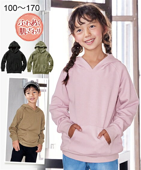 トレーナー キッズ 男の子 裏シャギープル パーカー 女の子 子供服 ジュニア服 カーキ/スモーキーピンク/ブラック/モカ 身長140/150/160cm ニッセン nissen
