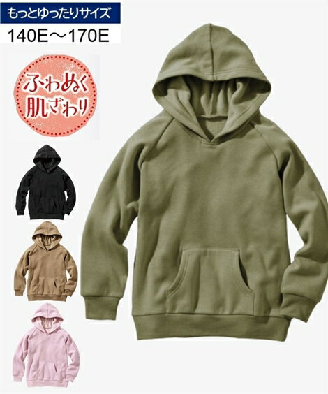 パーカー キッズ 男の子 もっとゆったりサイズ 裏シャギー プル カーキ/スモーキーピンク/ブラック/モカ 身長140/150/160cm ニッセン nissen